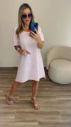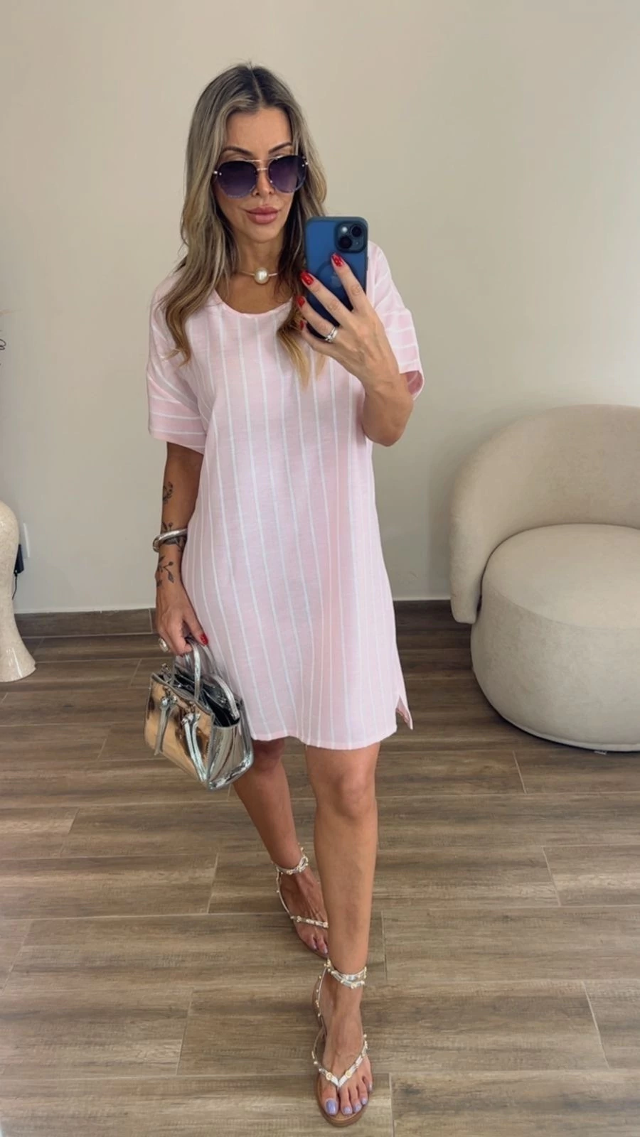 Vestido em linho misto com manguinhas, mini fenda nas laterais e parte de trás um pouquinho maior